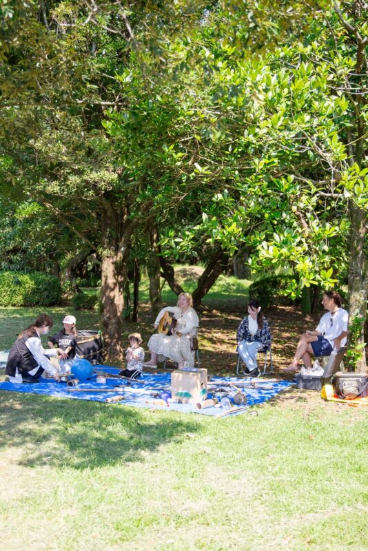 子どもたちと一緒に、音を鳴らし、笑い合う。