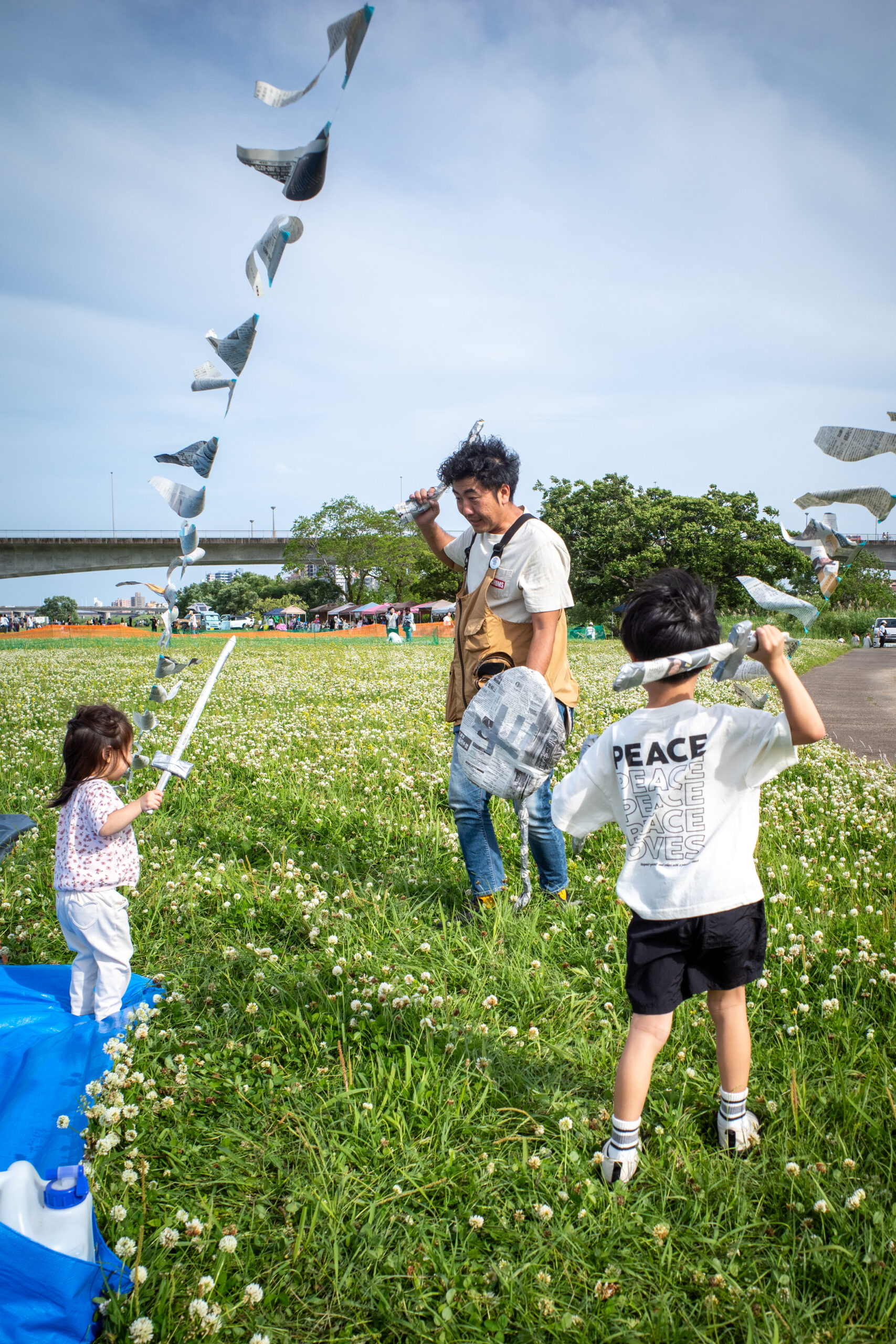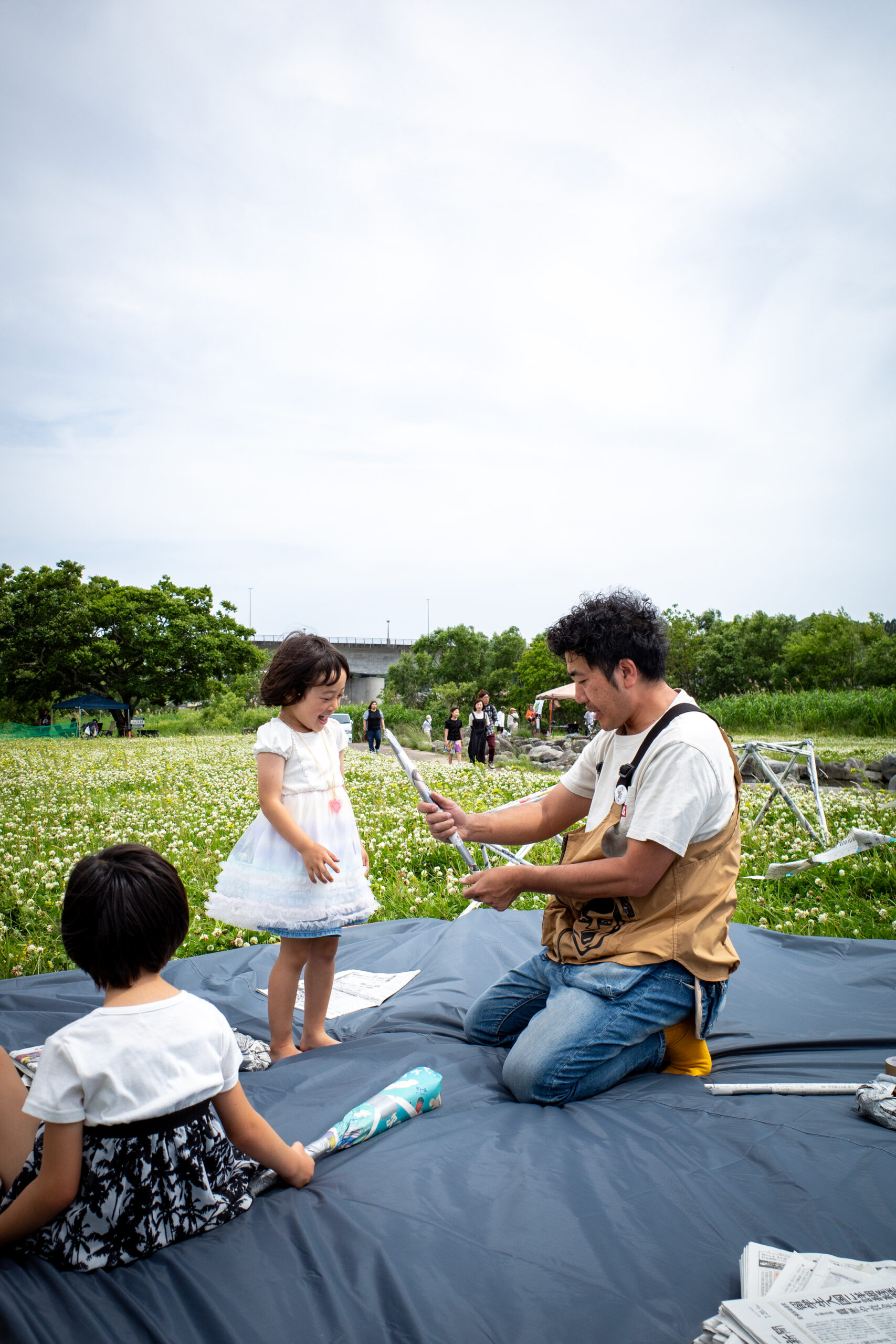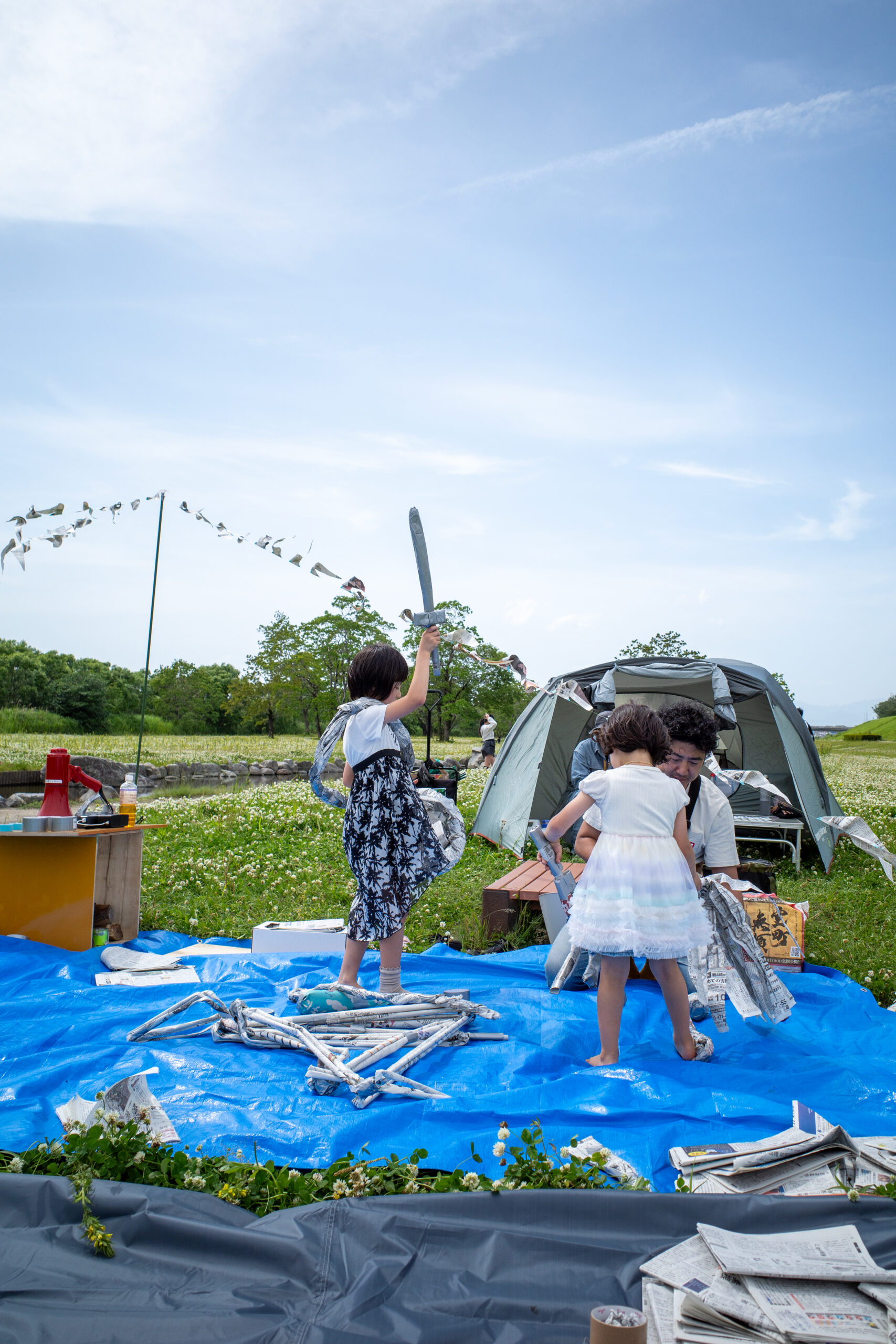 5月10日に開催された「大淀川プロジェクト」にて、新聞紙とガムテープを使った創作ブースを出展しました!